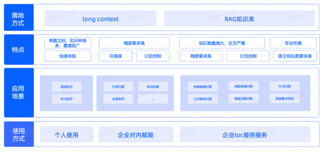 从产品应用层面,一般有三种常见的落地类型,分别为个人使用,企业对内赋能,企业 toC 提供服务等。