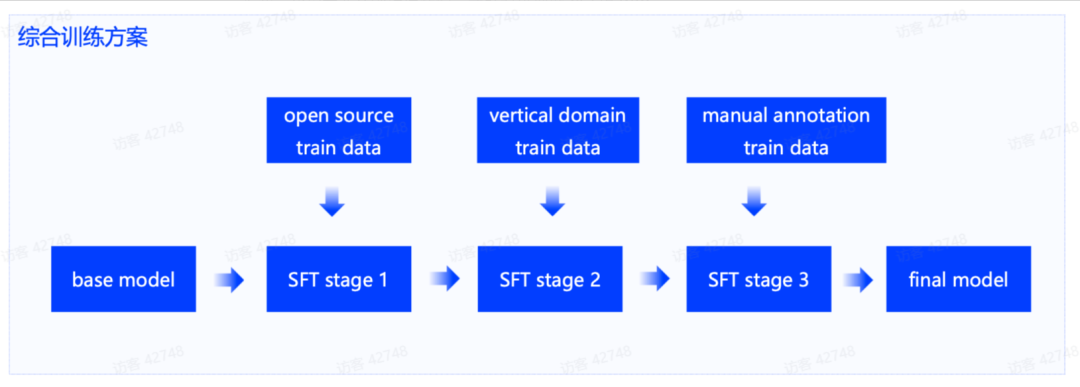 当构造了优质的数据后,模型微调上,我们一般会采用分阶段微调,即首先用开源通用问答数据进行微调,然后用垂域问答数据微调,最后用人工标注的高质量问答数据进行微调。
