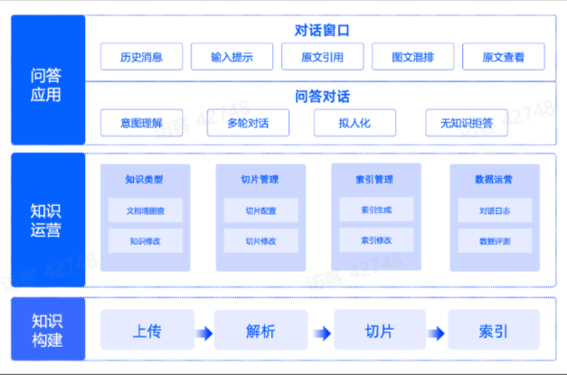 在知识构建过程,我们提供了包括知识类型管理、切片管理、索引管理和数据运营等知识运营和管理的工具,以此来辅助提升企业服务场景的落地效果。