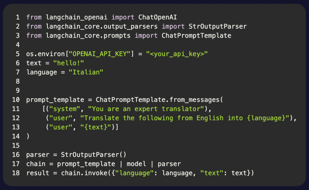 LangChain 的抽象方法所存在的问题,可以通过「将一个英语单词翻译成意大利语」这一微不足道的示例来说明。