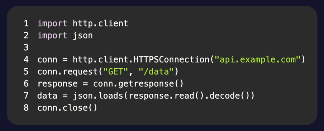 让我们看看 Python 中的另一个抽象比较,这次是从 API 中获取 JSON。
