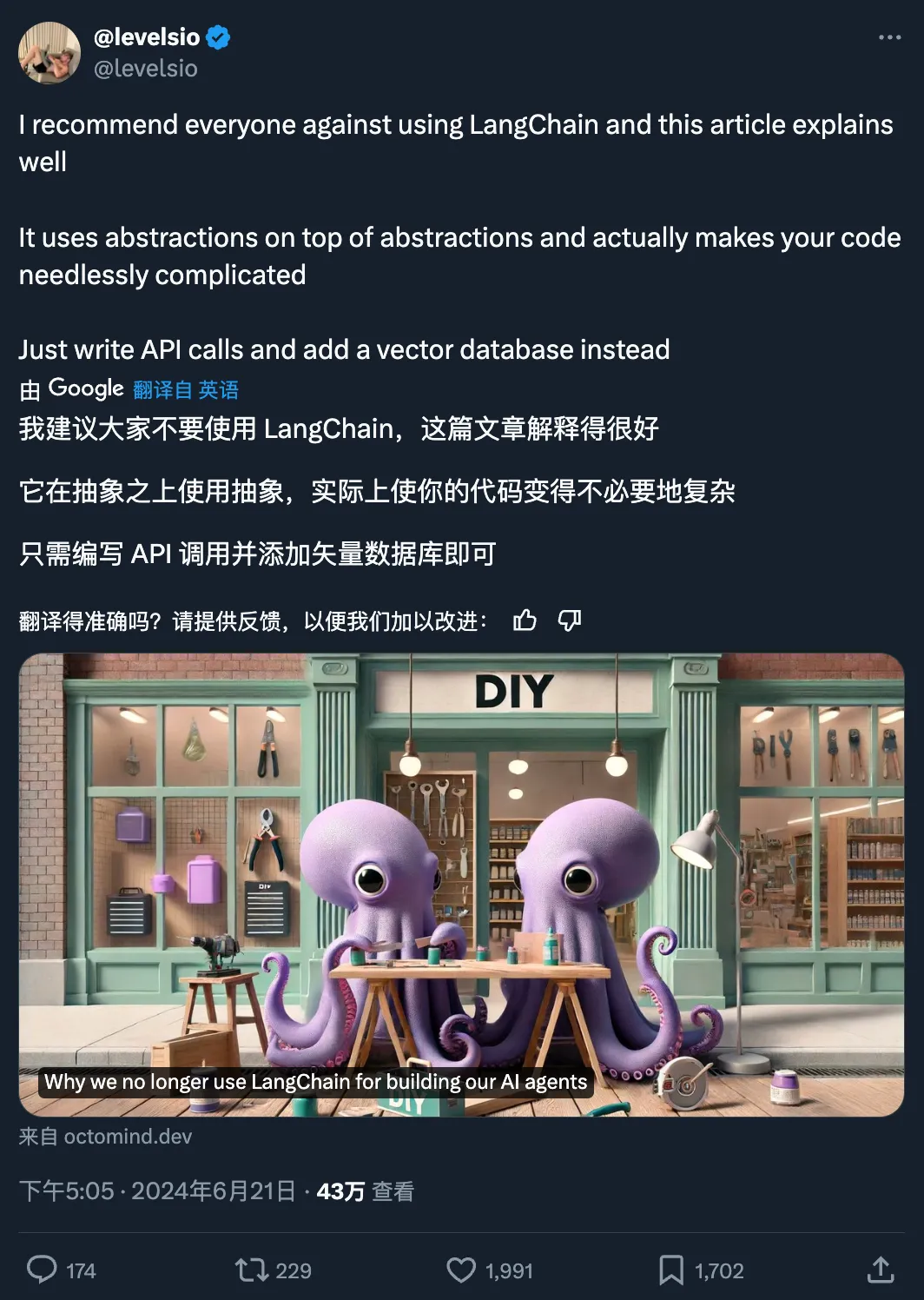LangChain 所做的只是增加了代码的复杂性,却没有带来任何明显的好处。