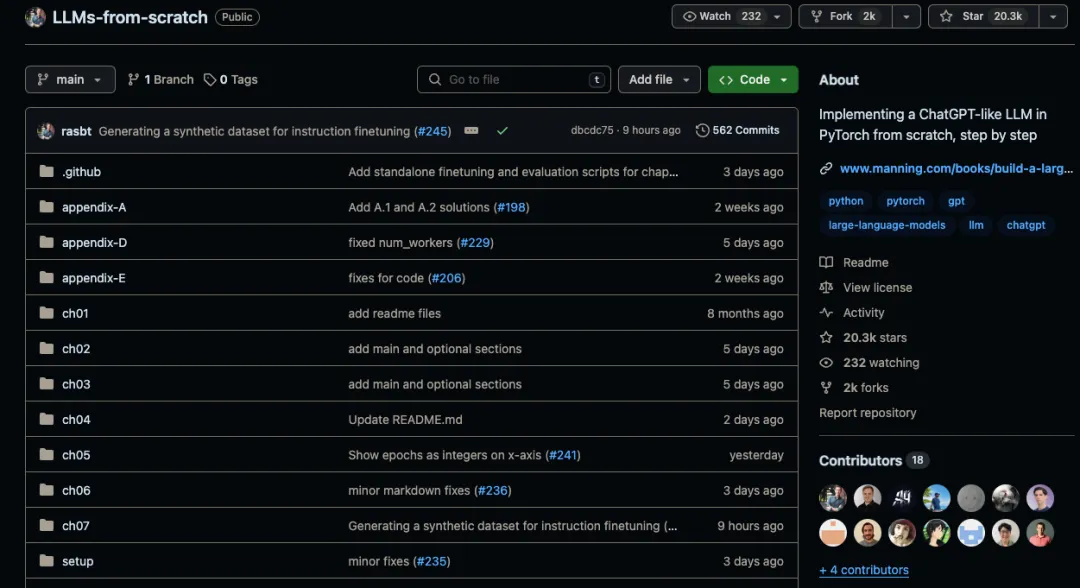 原文标题:重磅开源:从零构建大型语言模型,标星20.3K