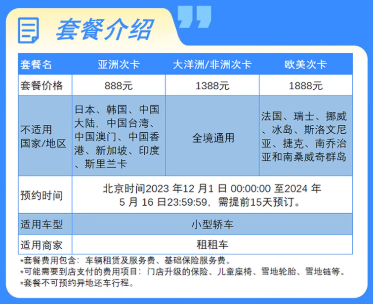 租租车-全球自驾7日套餐,888元起分亚洲、大洋洲/非洲、欧美,有效期到2024年5月31日: