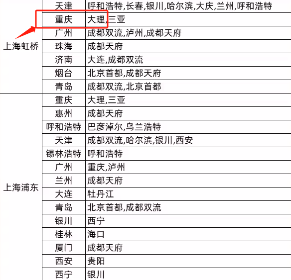 可用航线远超国航转转卡,旅行日期到2024年1月6日,关注顺路的转机航线,比如上海虹桥-天津-哈尔滨、上海虹桥-重庆-大理: