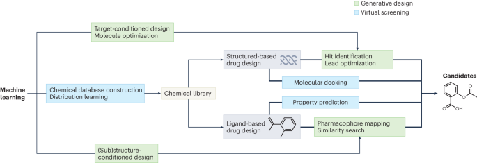 随着机器学习的高速发展和得益于早期的探索(包括构建了简单可用的优化目标与效果衡量方法),大量的算法被研发,包括组合优化,搜索,采样算法(遗传算法、蒙特卡洛树搜索、强化学习、生成流模型/GFlowNet,马尔可夫链蒙特卡洛等),与连续优化算法,贝叶斯优化,基于梯度的优化等。同时现有较为完备的算法衡量基准,比较客观公平的比较方式,也为开发机器学习算法开拓了广阔的空间。