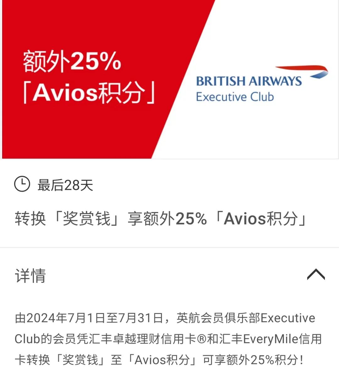 用香港汇丰信用卡消费,目的就是累积“奖赏钱”(还不懂什么是奖赏钱?可以看这篇:),奖赏钱可以抵扣账单,也可以兑换航司里程,目前7月份有限时活动,奖赏钱兑换英航里程可以获得25%额外加赠,这个加赠比例算是非常优秀了(据帅帅所知貌似之前没有过)。
