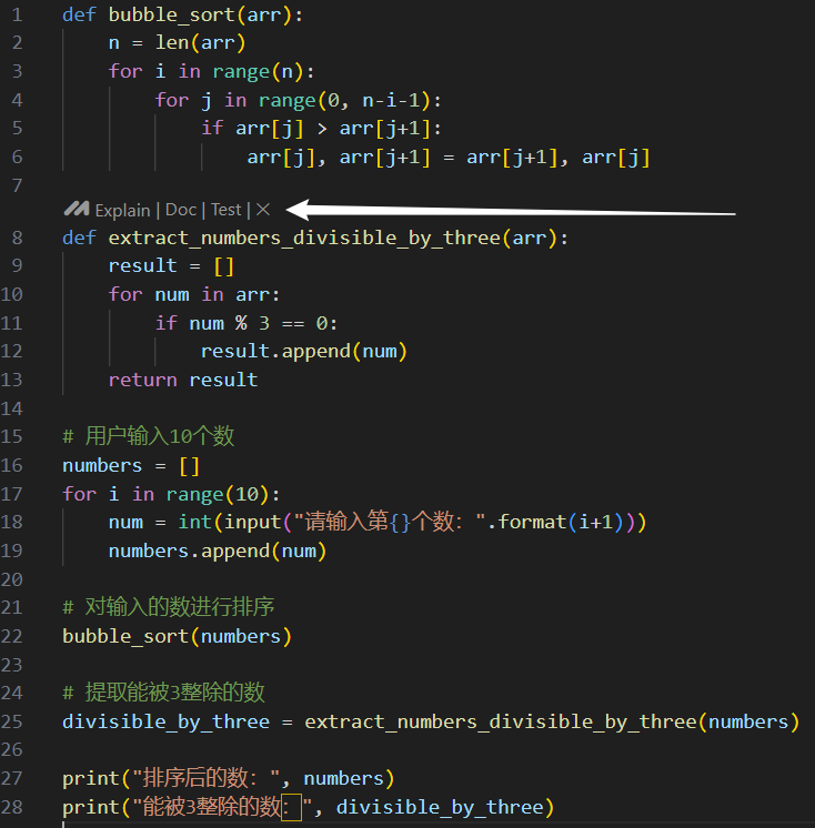 可以说有了豆包MarsCode,就再也不用担心看不懂代码了。基于大型语言模型强大的理解和生成能力,豆包MarsCode 能快速精准地解释项目代码。如上图中白色箭头所指示的位置,只需点击一下 Explain,豆包MarsCode 就能快速地为我们提供对这一函数的详细解释:
