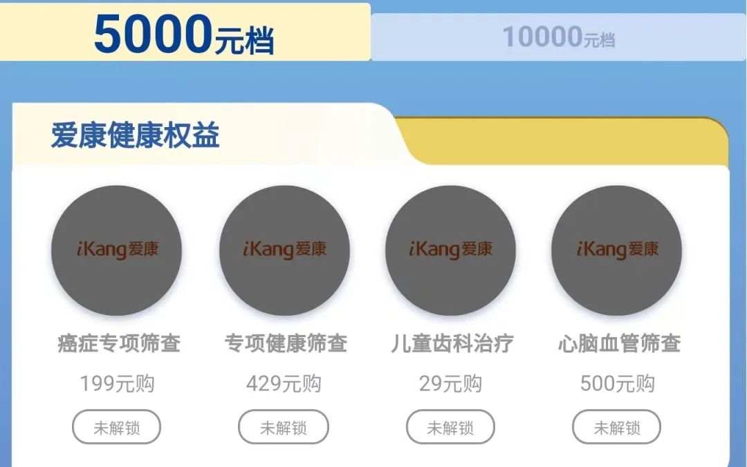 以消费达标5000元为例,可以花199、429或500购买健康筛查套餐。注意这是要花钱买的哦,可不是免费得。