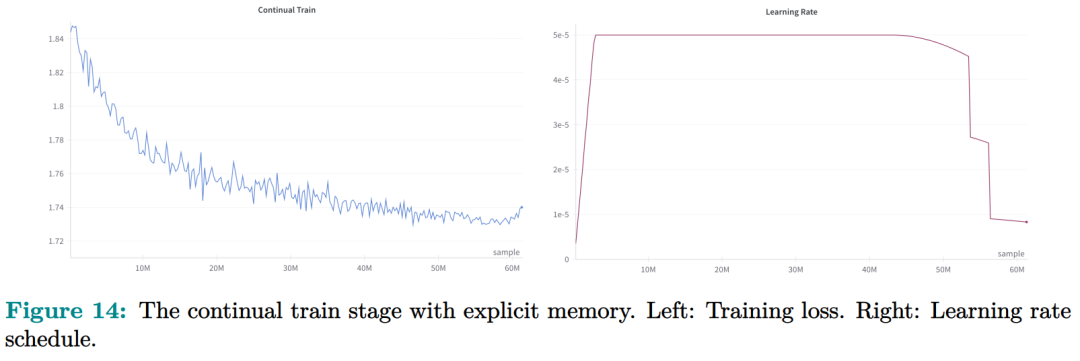 图 14 绘制了持续训练阶段训练损失和学习率时间表。