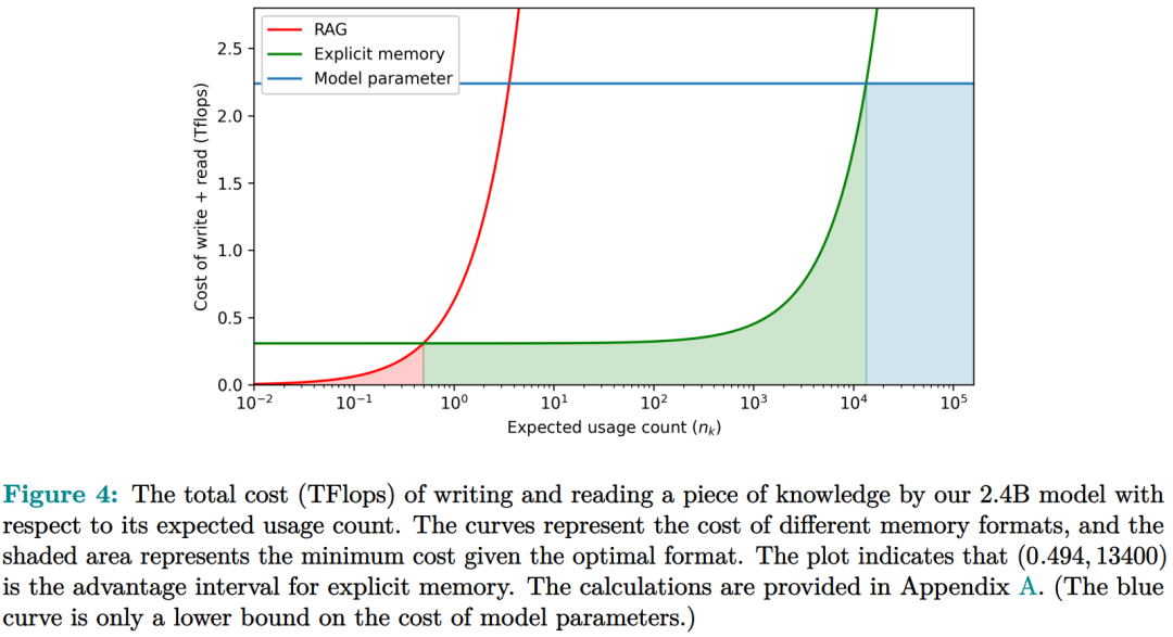 读取成本:在推理过程中,显式记忆从驱动器中检索,并与通常的上下文键值一起由自注意力读取。每个记忆由来自少量注意力头的极少量键值组成,从而大大减少了额外的计算、GPU 存储、驱动器存储和加载时间。它允许 LLM 频繁检索许多参考,而对解码速度的影响有限。
