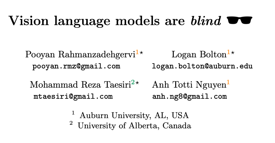 论文标题:Vision language models are blind
