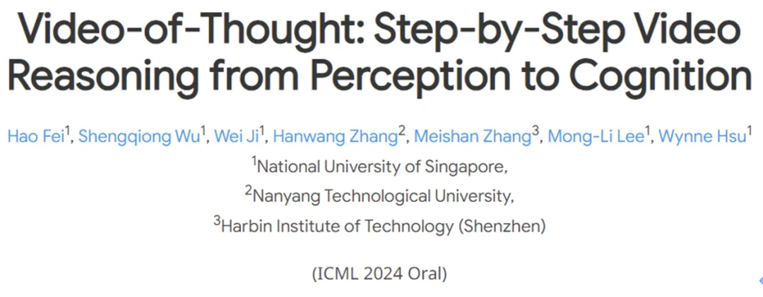 最近,新加坡国立大学联合南洋理工大学和哈工深的研究人员共同提出了一个全新的视频推理框架,这也是首次大模型推理社区提出的面向视频的思维链框架(Video-of-Thought, VoT)。视频思维链VoT让视频多模态大语言模型在复杂视频的理解和推理性能上大幅提升。该工作已被ICML 2024录用为Oral paper。