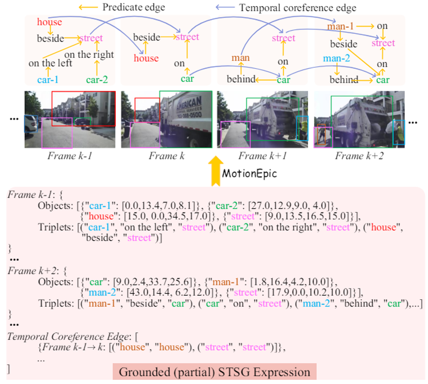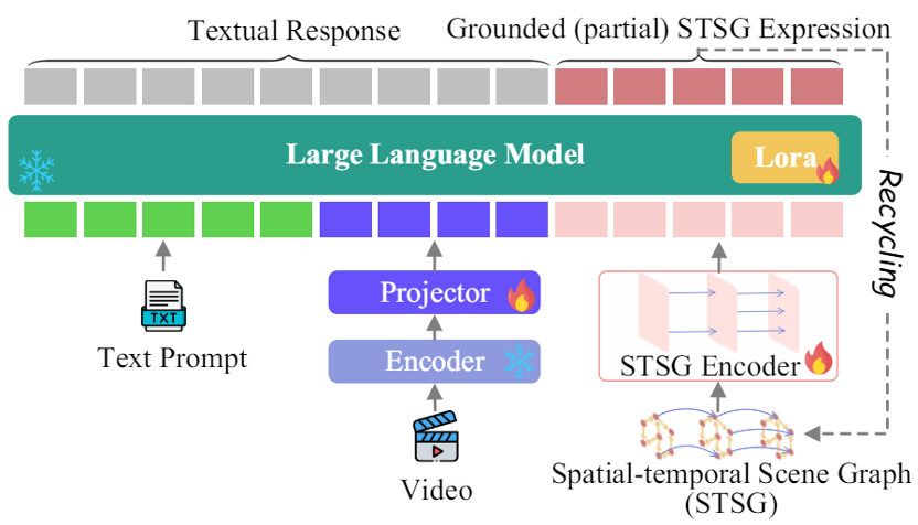 与此同时,为了协助实现上述的细粒度视频感知能力,作者还提出利用时空场景图(Spatial-Temporal Scene Graph, STSG)表征协助推理过程,帮助生成的细粒度感知中间结果,从而实现精细的时空特征理解。