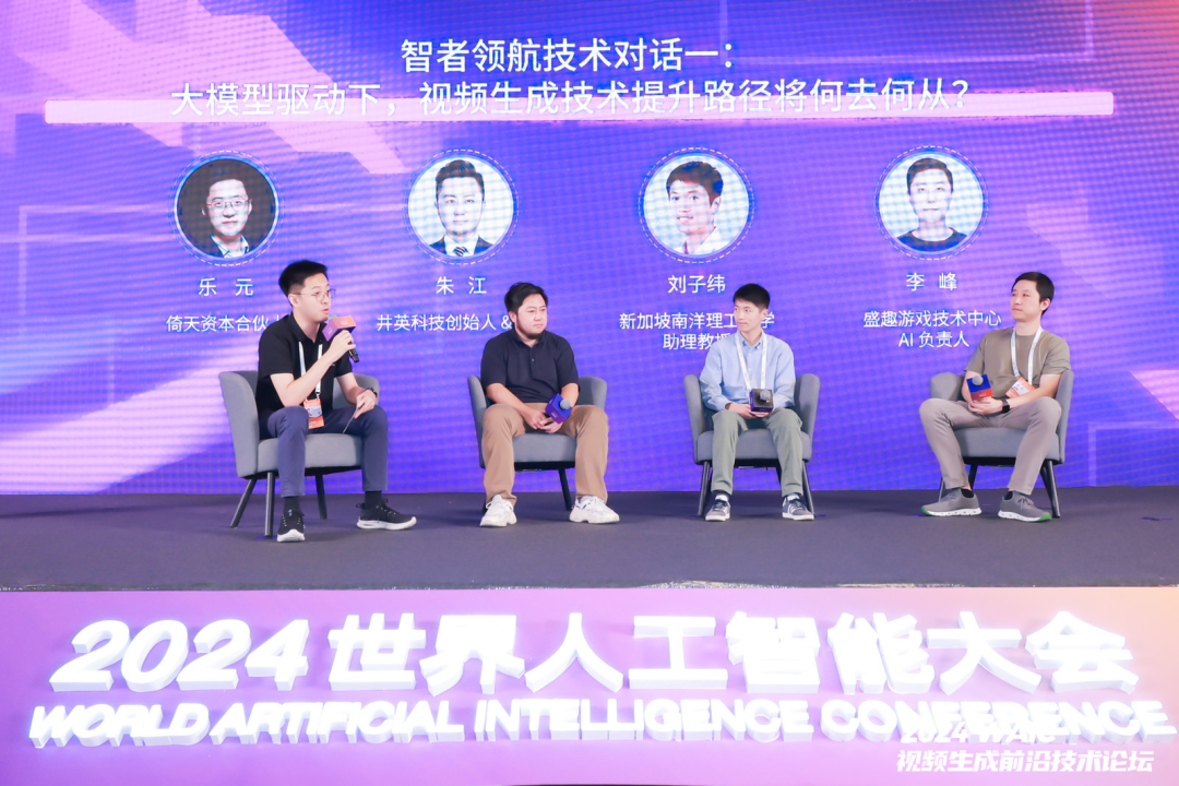 第一场圆桌讨论中,井英科技创始人 & CEO 朱江、新加坡南洋理工大学助理教授刘子纬、盛趣游戏技术中心 AI 负责人李锋、倚天资本合伙人乐元等嘉宾围绕「大模型驱动下,视频生成技术提升路径将何去何从?」这一主题展开深入探讨,阐述了视频生成技术在行业的落地前景。
