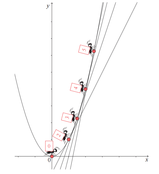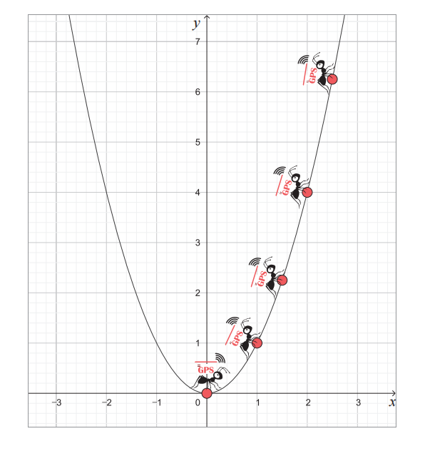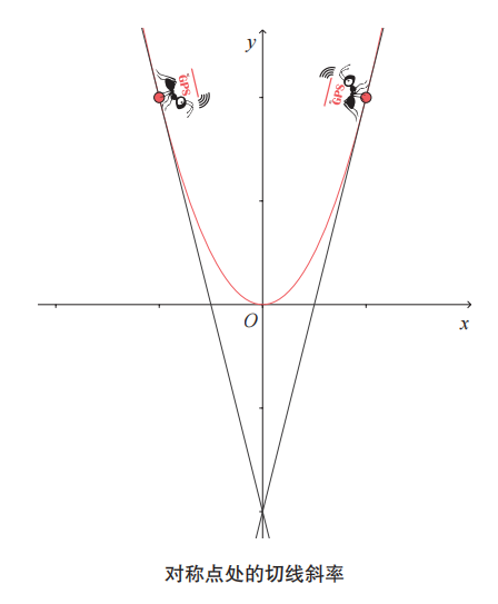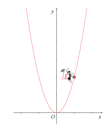 的图像,它关于 y 轴对称,开口向上。我们将 GPS 微分蚂蚁放在图像的任意点处,然后开始做一个想象实验。
