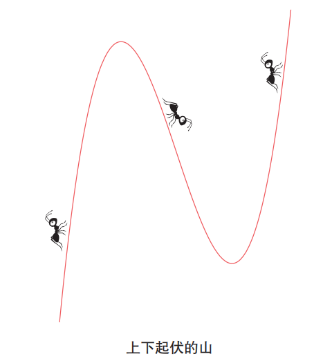 的图像是山的形状,并且它能够感知每个点处的倾斜度。普通微分蚂蚁对