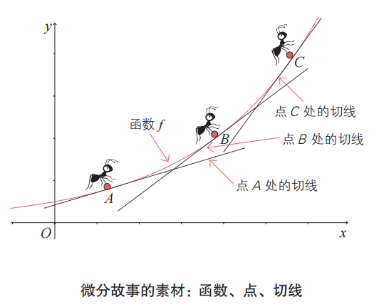 微分蚂蚁要翻越的山的形状,我们称之为“图形”。图形的准确形状可以利用函数的概念进行研究。微分课程的目标在于:当给定各种函数时,如何找到切线的斜率。本书将为你更直观地理解这一过程提供帮助。