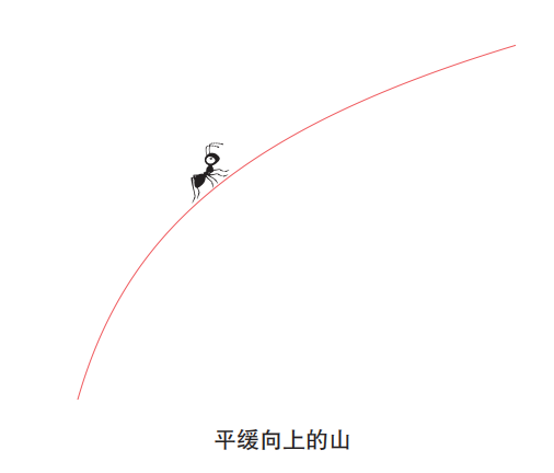 当微分蚂蚁在曲线上移动时,它会感知到不同的倾斜度,从而理解曲线的形状。例如,在山形的曲线上,微分蚂蚁在山顶会感知到平缓的斜率,在山坡上会感知到较大的斜率。