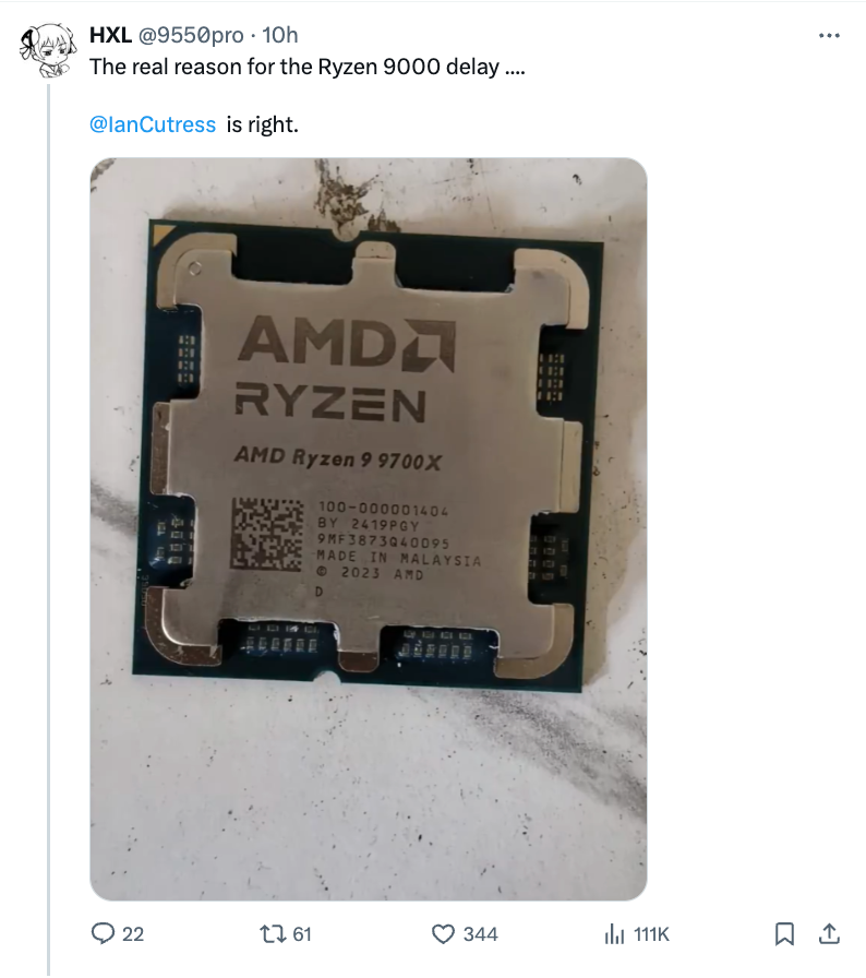 然而临近上市日期,AMD 突然宣布,由于「对 Ryzen 9000 系列处理器的包装产品测试流程」存在问题,其将推迟数周推出搭载 Zen 5 的 Ryzen 9000 处理器。由于最近英特尔酷睿芯片曝出问题,人们对高端芯片质量的关注度很高,AMD 的这一消息让人不禁怀疑:难道现在苏妈也不靠谱了?