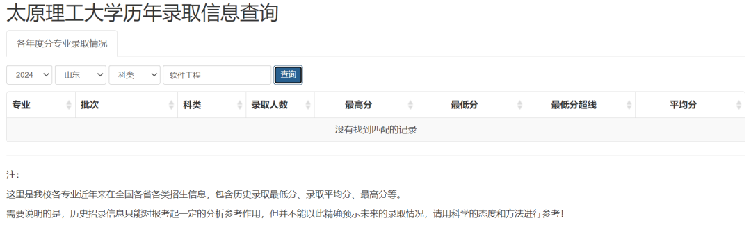 当我们输入其他考区时,显示太原理工大学并未在其他地方招收学生。