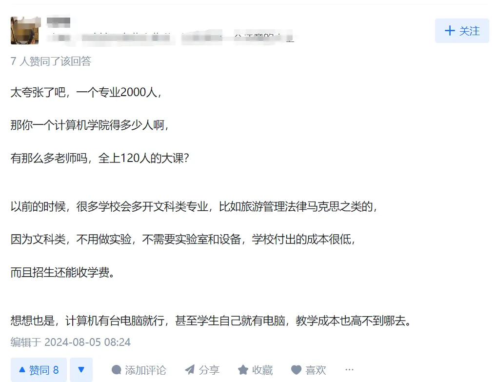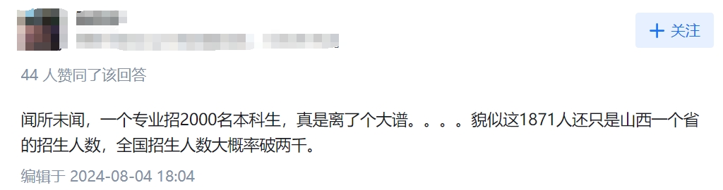 「60 个班,近 2000 人」,看到这个招生数量,各路网友们也是非常惊讶,一个专业招收这么多学生,这也太夸张了吧,别的不说,有这么多老师吗,难道学生都要上 120 人的大课?
