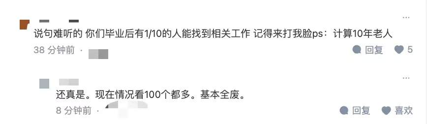 这种忧虑也顺延到了这批学生走进就业市场的时候,如果学校无法培养出高质量的毕业生,一旦他们进入企业,对于企业而言,增加了业务风险。而另一种可能是,那些专业技能不足的毕业生将成为残酷的就业市场首批淘汰的「炮灰」,这不仅加剧了学生的就业困境,更进一步扩大大学教育与市场需求之间的脱节,陷入一种恶性循环。