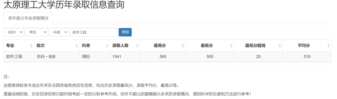 根据官网查询到的准确消息,今年太原理工大学软件工程录取人数实为 1871 人(山西考区,原计划为 1795 人),最高分是 578 分,最低 534 分,平均 546 分。