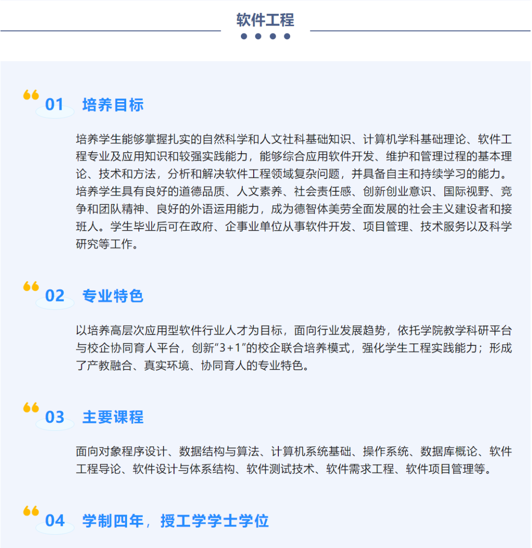 据最新版报考指南介绍,太原理工大学的软件工程专业主要课程包括:面向对象程序设计、数据结构与算法、计算机系统基础、操作系统、数据库概论、软件工程导论、软件设计与体系结构、软件测试技术、软件需求工程、软件项目管理等。