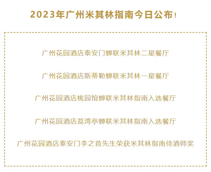 广州老牌星级酒店,有四家餐厅获得三颗米其林星星和推荐,500元消费券可以在店内6家餐厅任选其一使用。