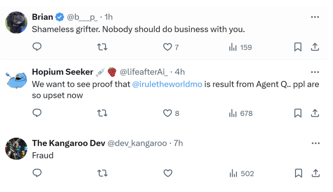 不过,网友似乎对 Agent Q 并不买账。大家关心更多的还是他们是否真的借「草莓哥」账号炒作的事情,甚至有些人称他们为无耻的骗子。