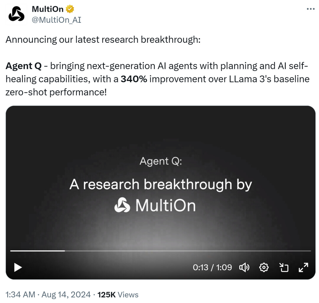 今天,一家 AI 智能体初创公司「MultiOn」的创始人直接出来认领:虽然没等来 OpenAI 发布「Q*」,但我们发了操控「草莓哥」账号的全新智能体 Agent Q,快来和我们在线玩耍吧!