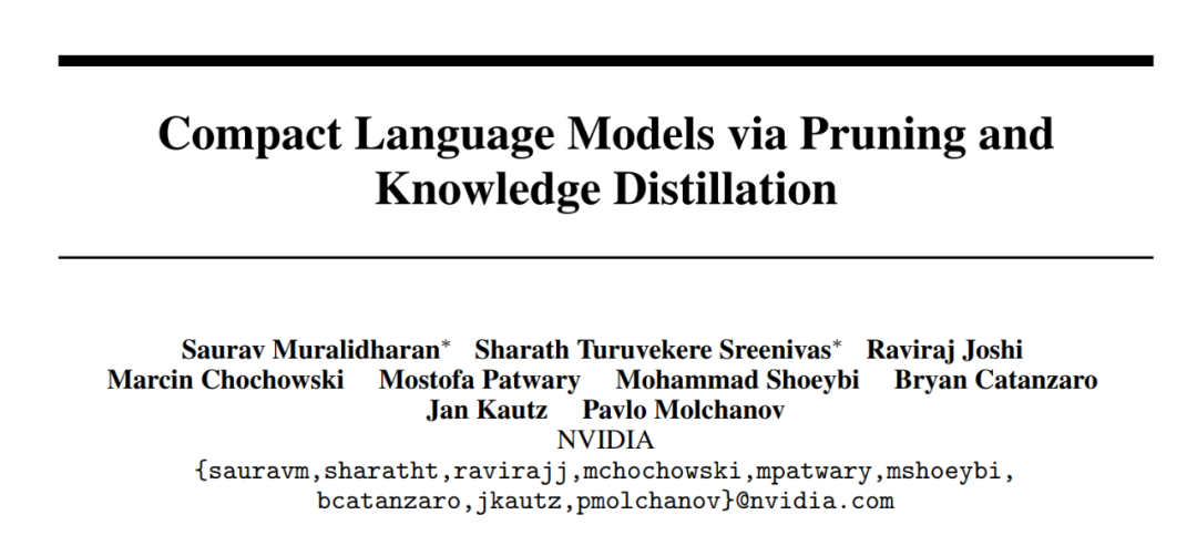 论文标题:Compact Language Models via Pruning and Knowledge Distillation