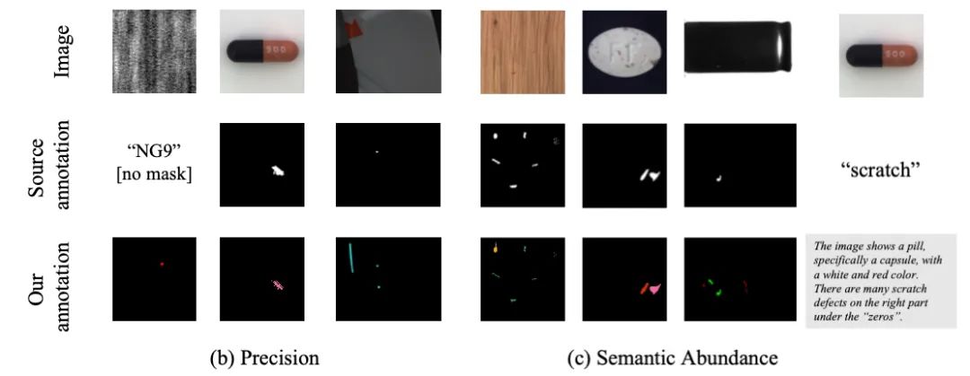 从实际的工业生产来看,工厂对缺陷检测的要求细致,需要在控制缺陷件的同时保证收益率。然而,现有缺陷检测数据集常常缺乏应用所需的精确度和语义丰富性,无法良好支持实际生产。