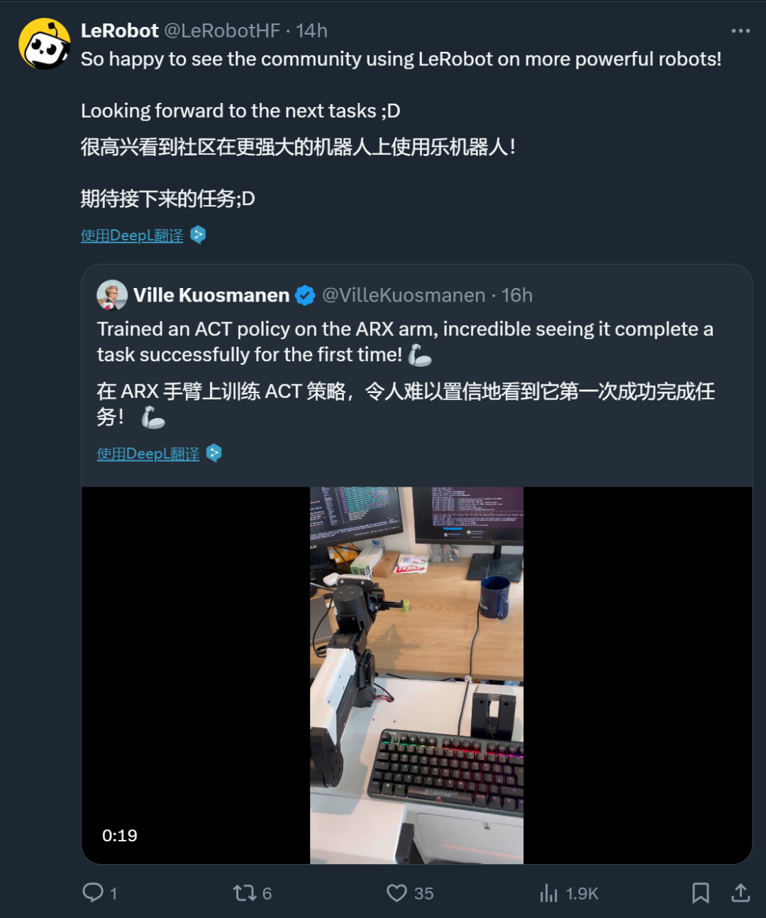 目前,LeRobt 的开源已经产生了一定的影响力。