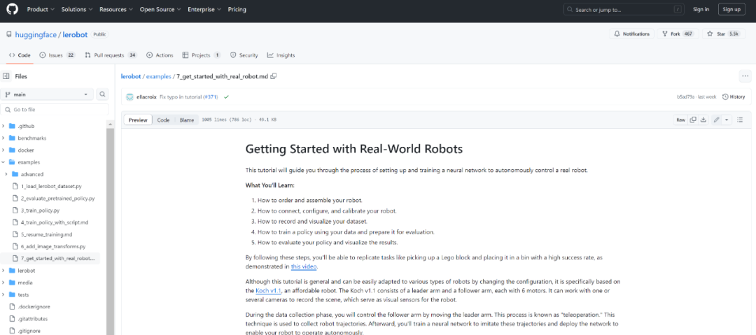 Github 链接:https://github.com/huggingface/lerobot/blob/main/examples/7_get_started_with_real_robot.md