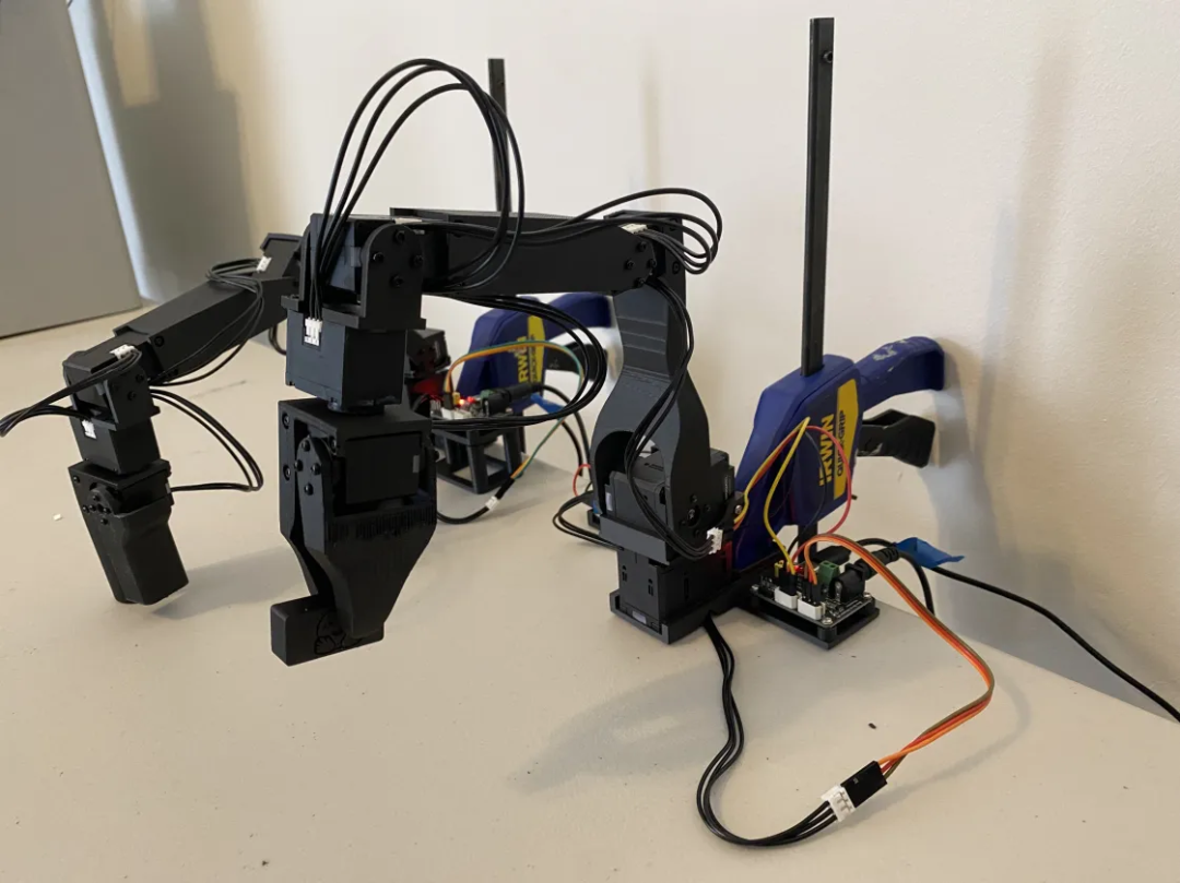 接下来,使用 5V 电源为主导臂供电,使用 12V 电源为从动臂供电。此外,使用 USB-C 电缆将每个臂连入计算机。
