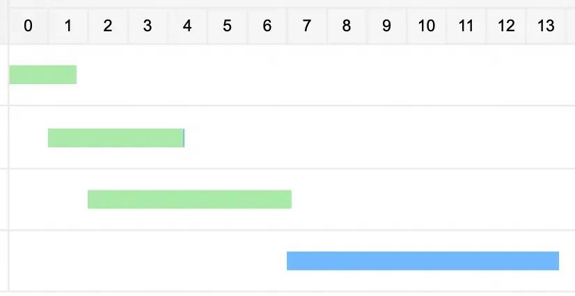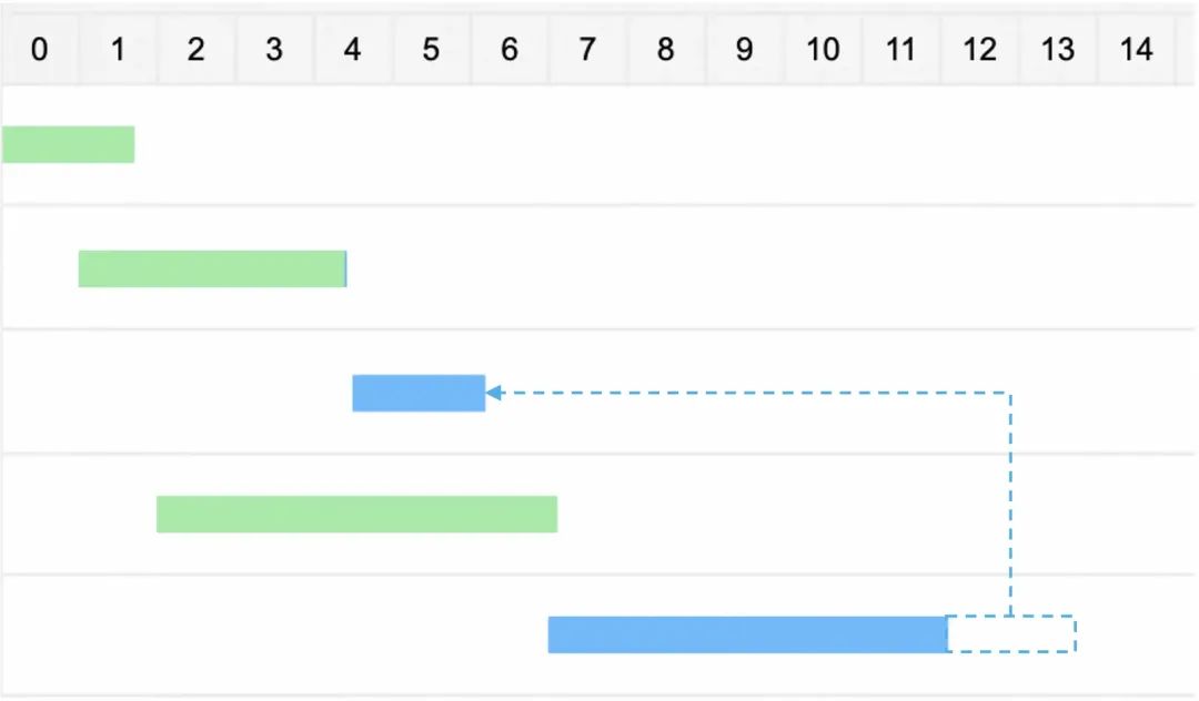 直接引用视图:视图中的计算逻辑堆积到大宽表任务中,增加了运行时间(绿色:上游任务;蓝色:大宽表慢任务)。