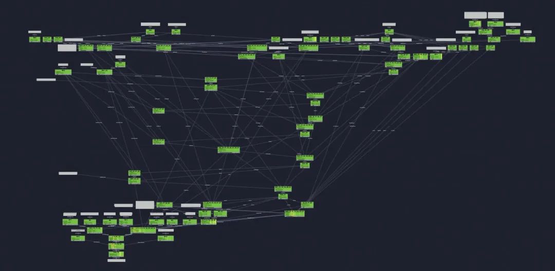 想从DAG图里梳理清楚数据加工链路,已经是不现实的了,只能回到SQL代码里,看看实现了哪些逻辑,再来寻找切入点。我们忽略掉代码中关于指标加工/格式转化/字段拼接等部分,只看数据表的结构加工和数据流向,大概可以梳理出这样一条主干链路。