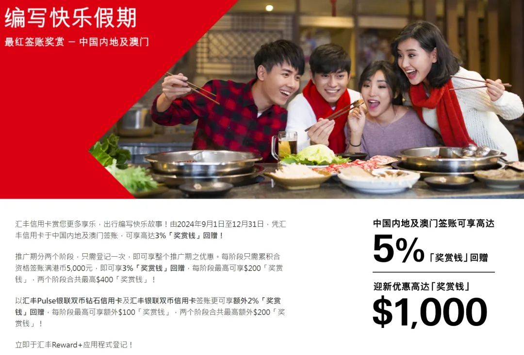 “最红签账奖赏 - 中国内地及澳门”活动续期。即日起到年底,用Pulse卡在内地和澳门消费,最高可以获得5%返现。