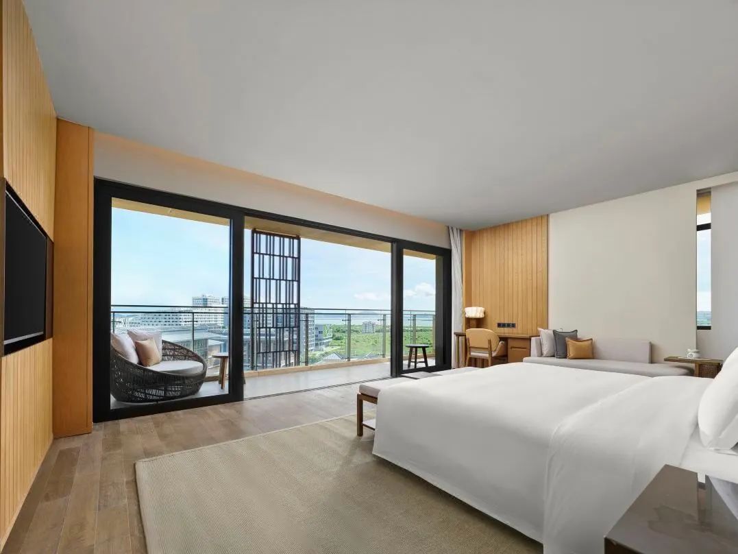 客房装饰温馨雅致,细节考究,享悦榕同款床品,每间均有中式阳台或宽敞花园,部分可赏西溪风景。