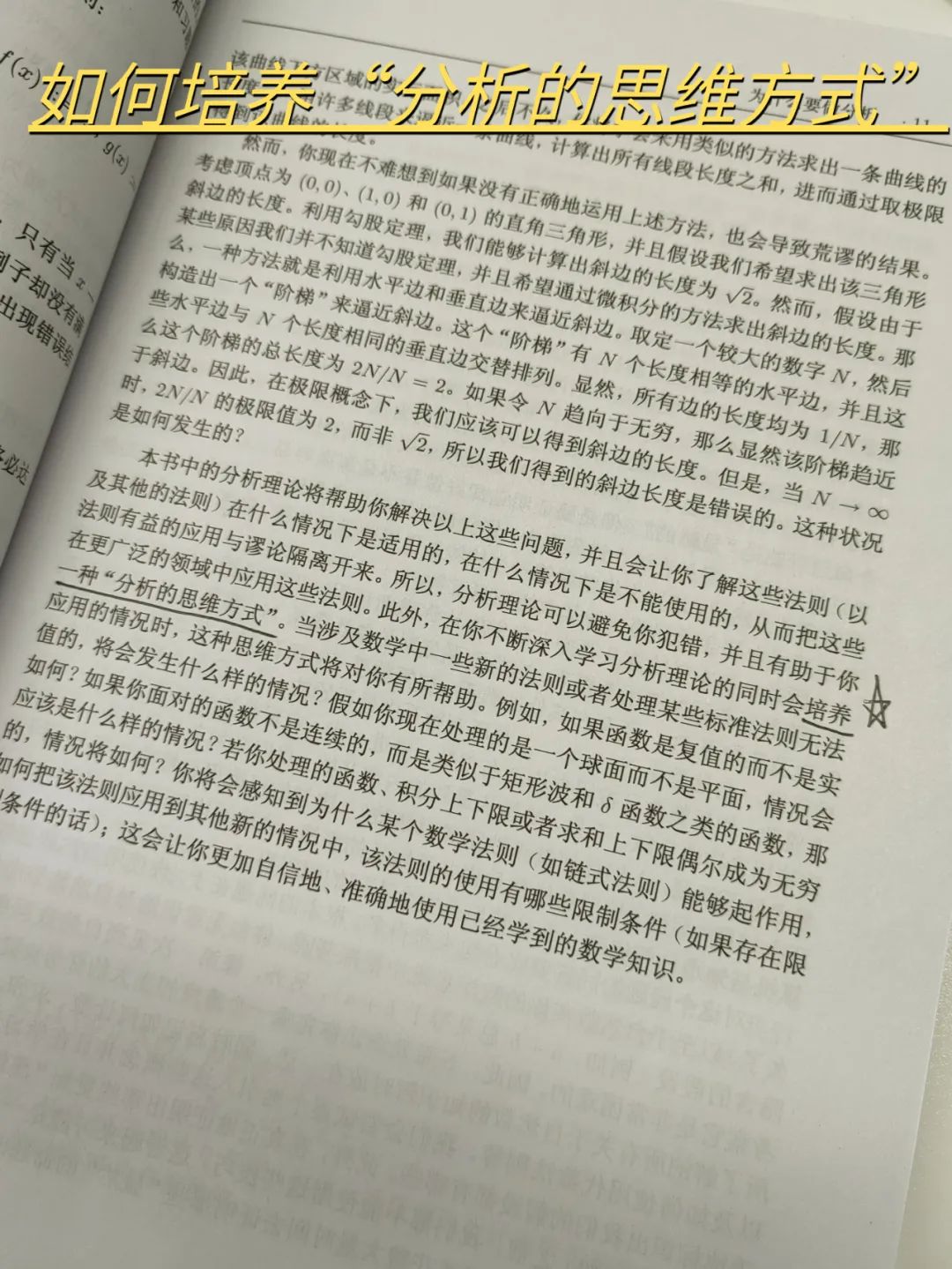 数学分析在于培养“分析的思维方式”,重视基本功。