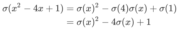 不改变形式,就要求这个函数能保持加法和乘法,这表明 是一个同态,即是说