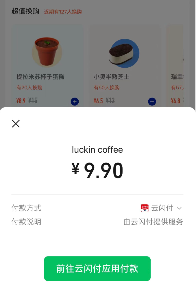 蓝翼这里给个小技巧,提前在云闪付绑定邮幸小绿卡,在瑞幸小程序下单 9.9 元咖啡或其他优惠的时候,记得选择云闪付 App 用小绿卡完成支付——