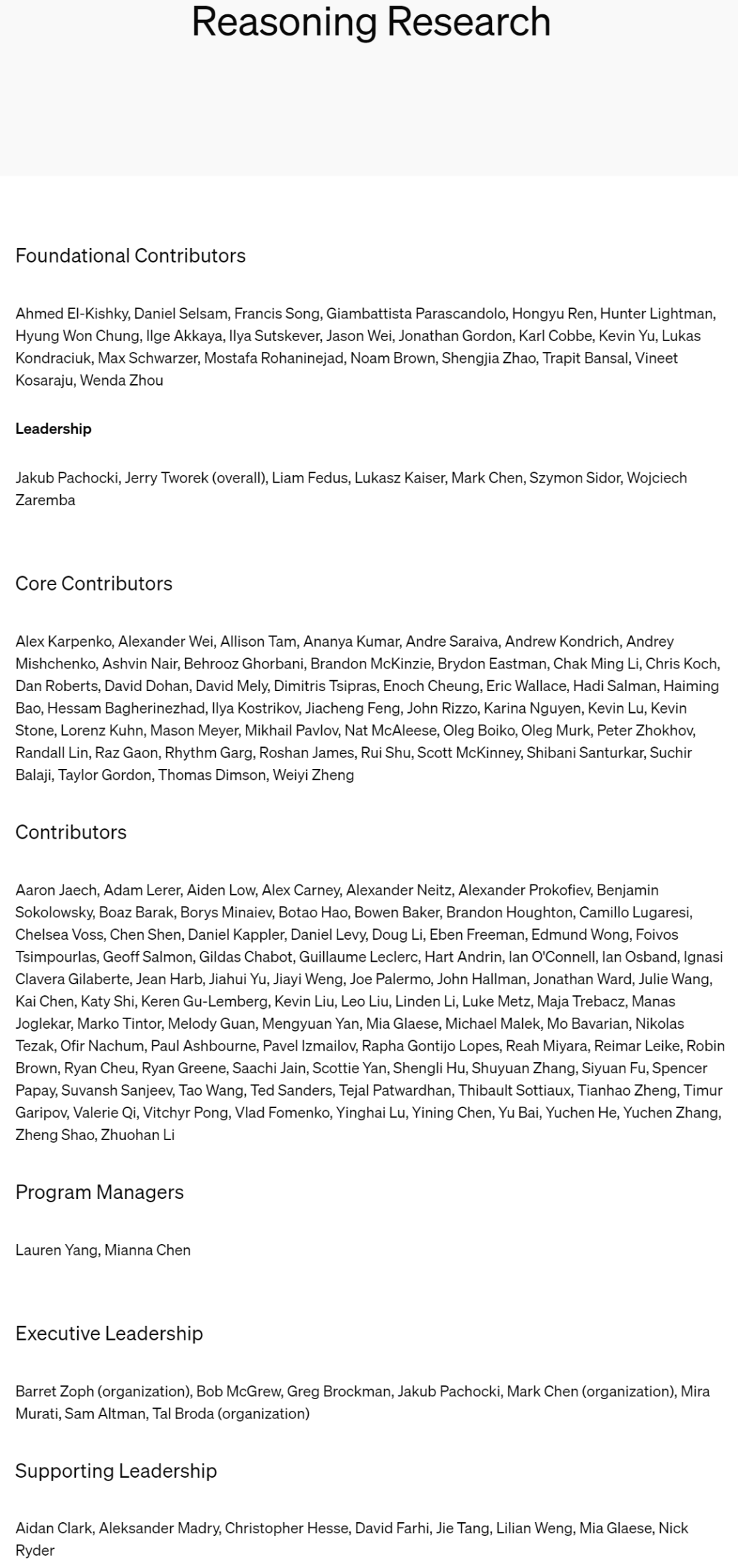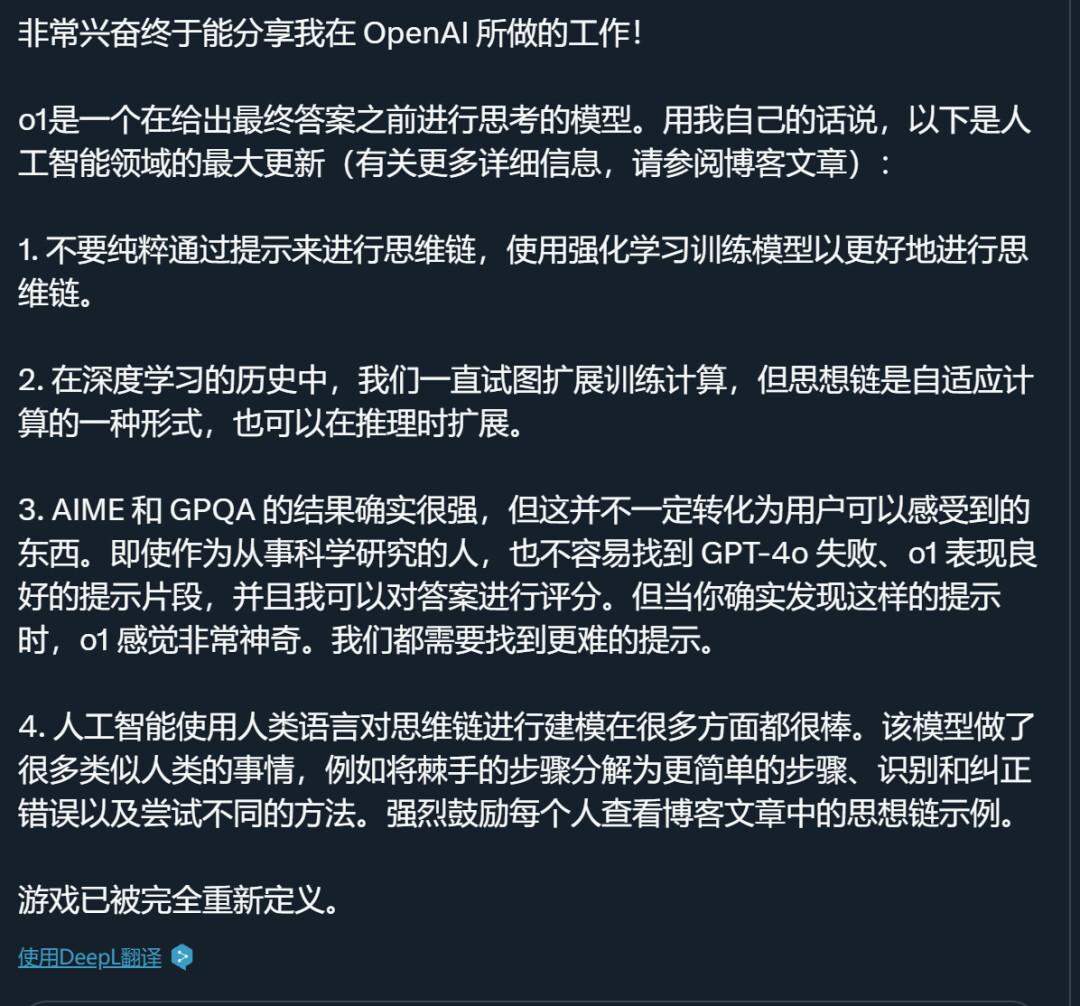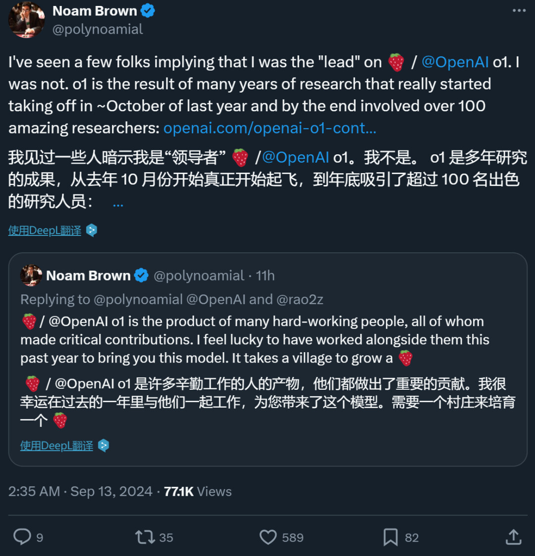 - OpenAI o1 强模型公布后,项目核心贡献者名单公布。