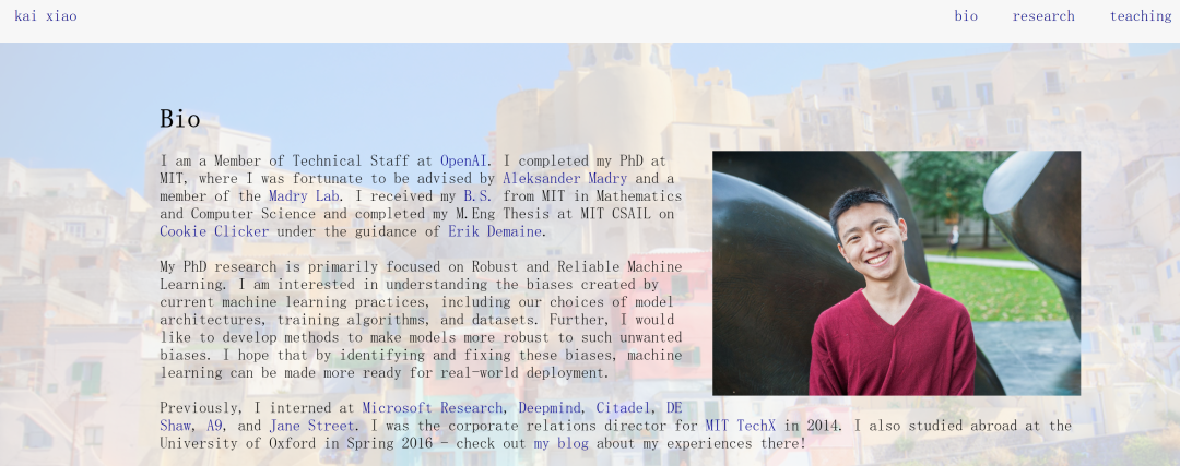 Kai Xiao 是 OpenAI 的机器学习工程师,在麻省理工学院获得学士学位,随后获得计算机科学博士学位。