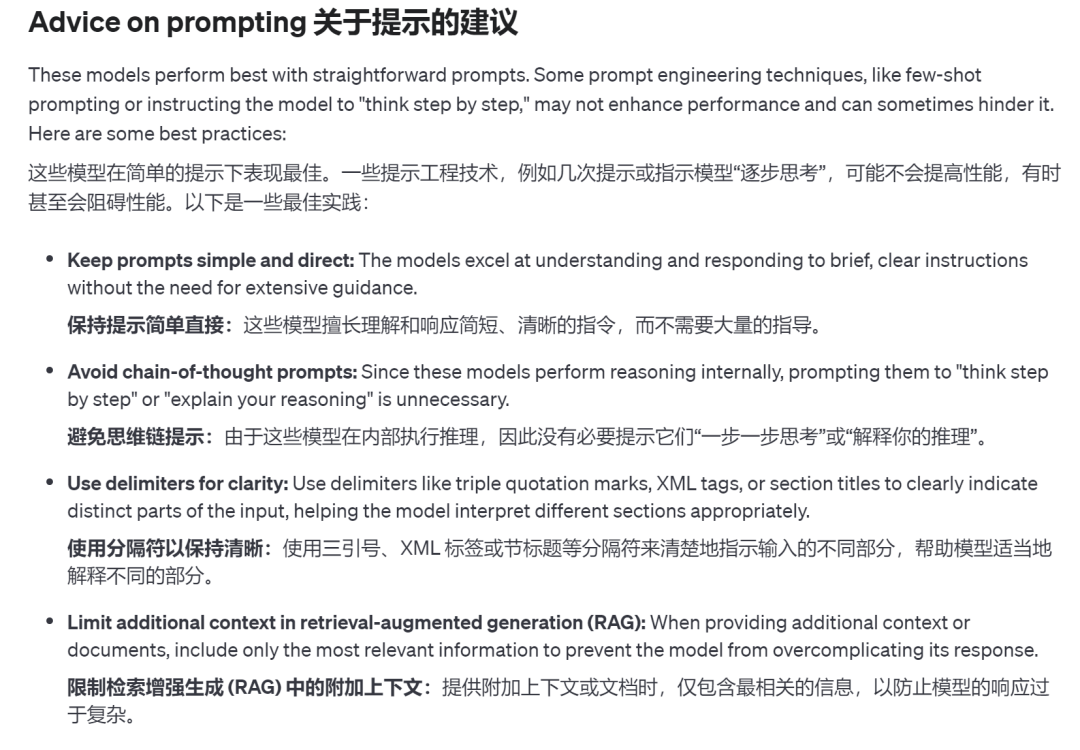 OpenAI API 文档中提及的提示建议。示例参见:https://platform.openai.com/docs/guides/reasoning/advice-on-prompting