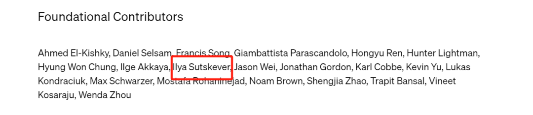 OpenAI o1 是一个庞大的项目,背后藏着一支强大的研究团队,Jason Wei、Lilian Weng 都是其中之一。在一个单独的博客中,OpenAI 列出了该项目的所有贡献者。有意思的是,已经离职的前首席科学家 Ilya 也出现在了核心贡献者名单中。所以,这个 OpenAI o1 就是 Ilya 所看到的吗?还是说,他看到了更了不得的东西?