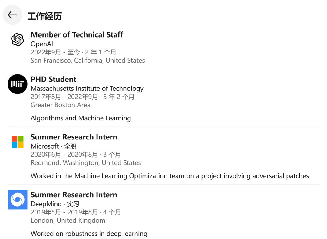 过去的几年,他曾在微软研究院、Deepmind、Citadel、DE Shaw、A9 和 Jane Street 实习,并于 2022 年 9 月加入 OpenAI。