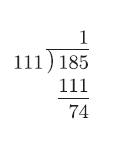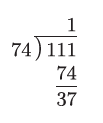 接下来就要求余数74 和111 的最大公约数。由于我们无法一眼就看出答案,所以此时还需再次进行除法运算。